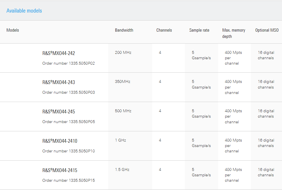 - Bộ nhớ tiêu chuẩn sâu nhất của ngành là 400 Mpoints trên mỗi kênh (800 Mpts với tùy chọn)