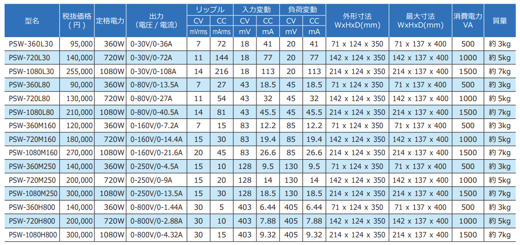 1. Đặc điểm của máy cấp nguồn DC phạm vi rộng TEXIO PSW seria